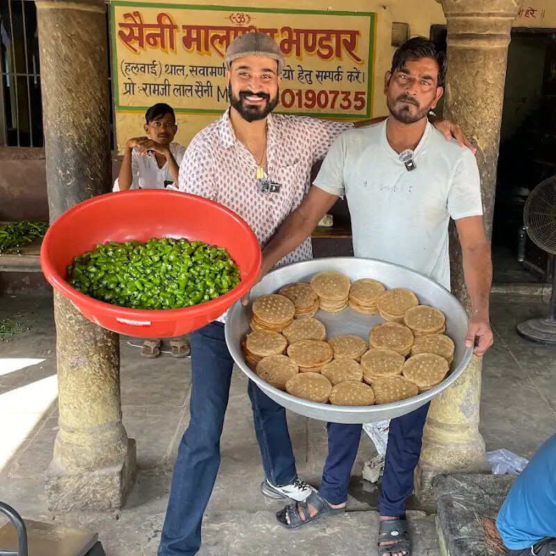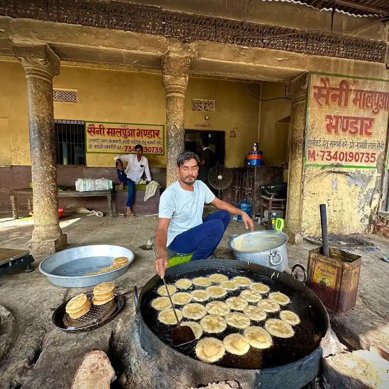 Goner Malpua, Mirchi ke Tipore, Dal, and Kheer (Saini Malpua Bhandar, Jagdish Temple) | गोनेर मालपुआ, मिर्च के टिपोरे, दाल और खीर (सैनी मालपुआ भंडार, जगदीश मंदिर)